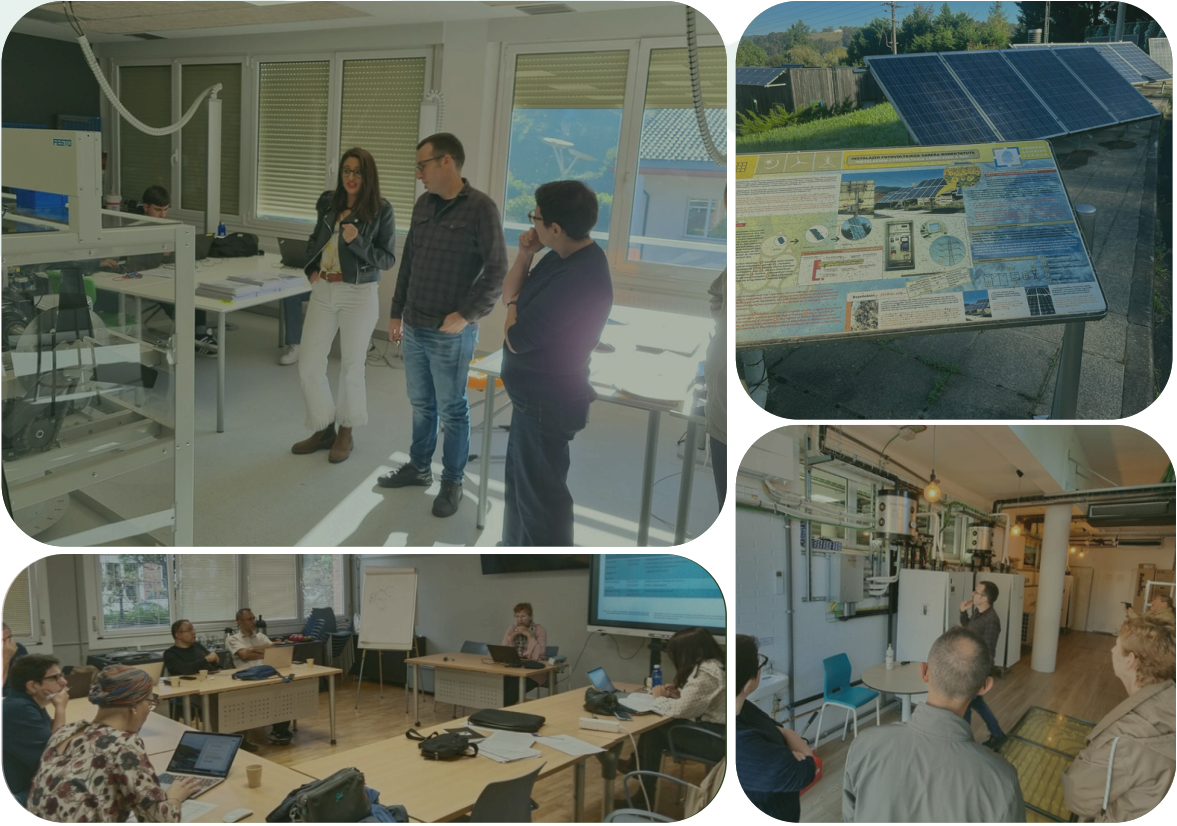 Discussions centered on key themes such as the use of digital tools for energy monitoring, strategies to improve energy efficiency in schools, promoting women’s participation in technical fields, and enhancing the exchange of good practices among partners. A highlight of the meeting was the guided tour of Zubieta’s renewable energy facilities, where partners experienced firsthand how the school integrates sustainable technologies into real learning environments.